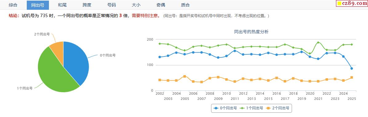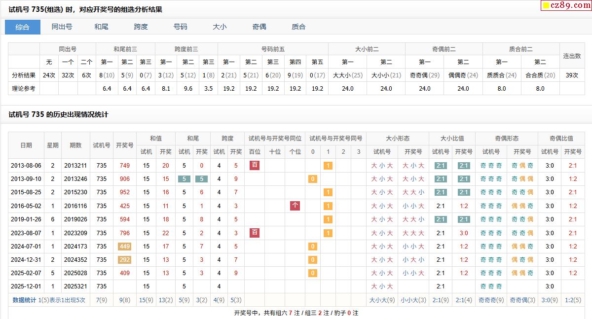 > 321期福彩3D试机号735对应开奖号的组选分析结果